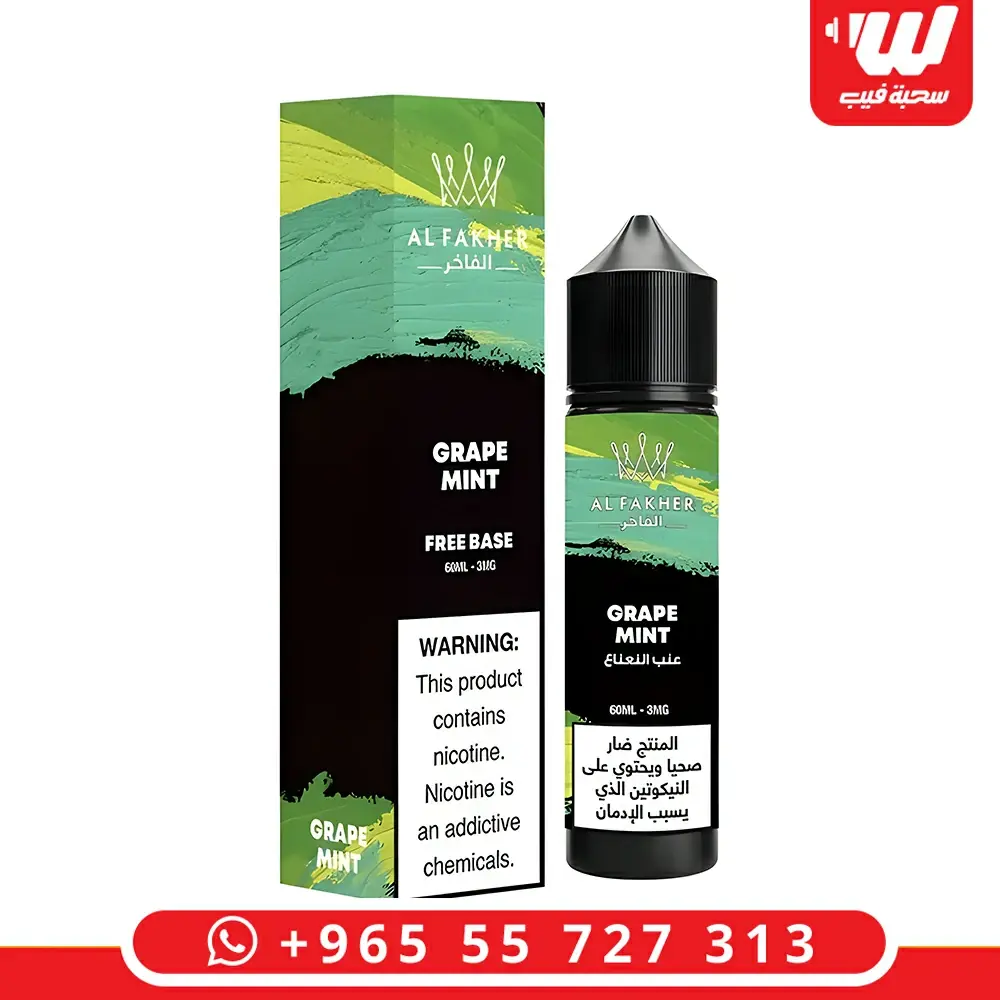 نكهة الفاخر عنب نعناع 60 مل مزيج عنب غني مع نعناع منعش، توازن مثالي بين الحلاوة والانتعاش، تركيز 3mg مناسب لسحبة DL بطعم ثابت وواضح.