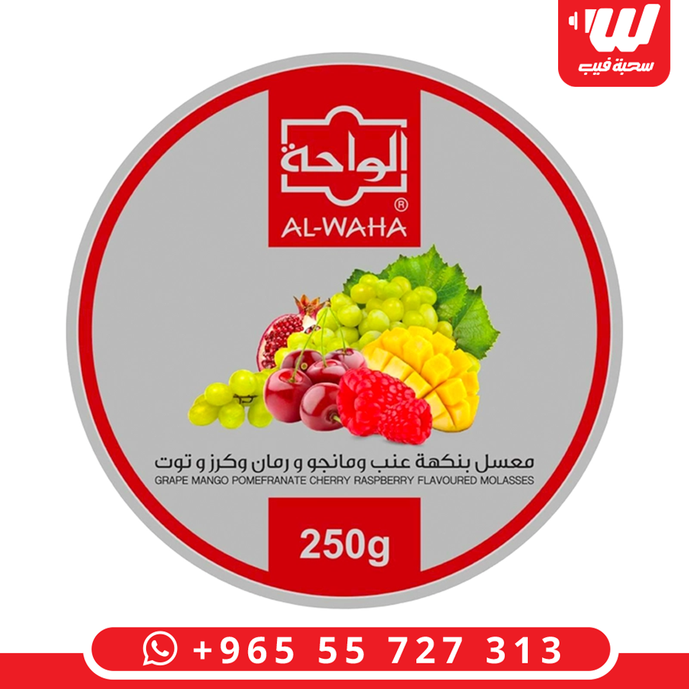 معسل الواحة بمكس “جبار” يجمع 5 نكهات (عنب، مانجو، رمان، كرز، وتوت). طعم فواكه غني ومتشعب، دخان كثيف، عبوة 250 جم.