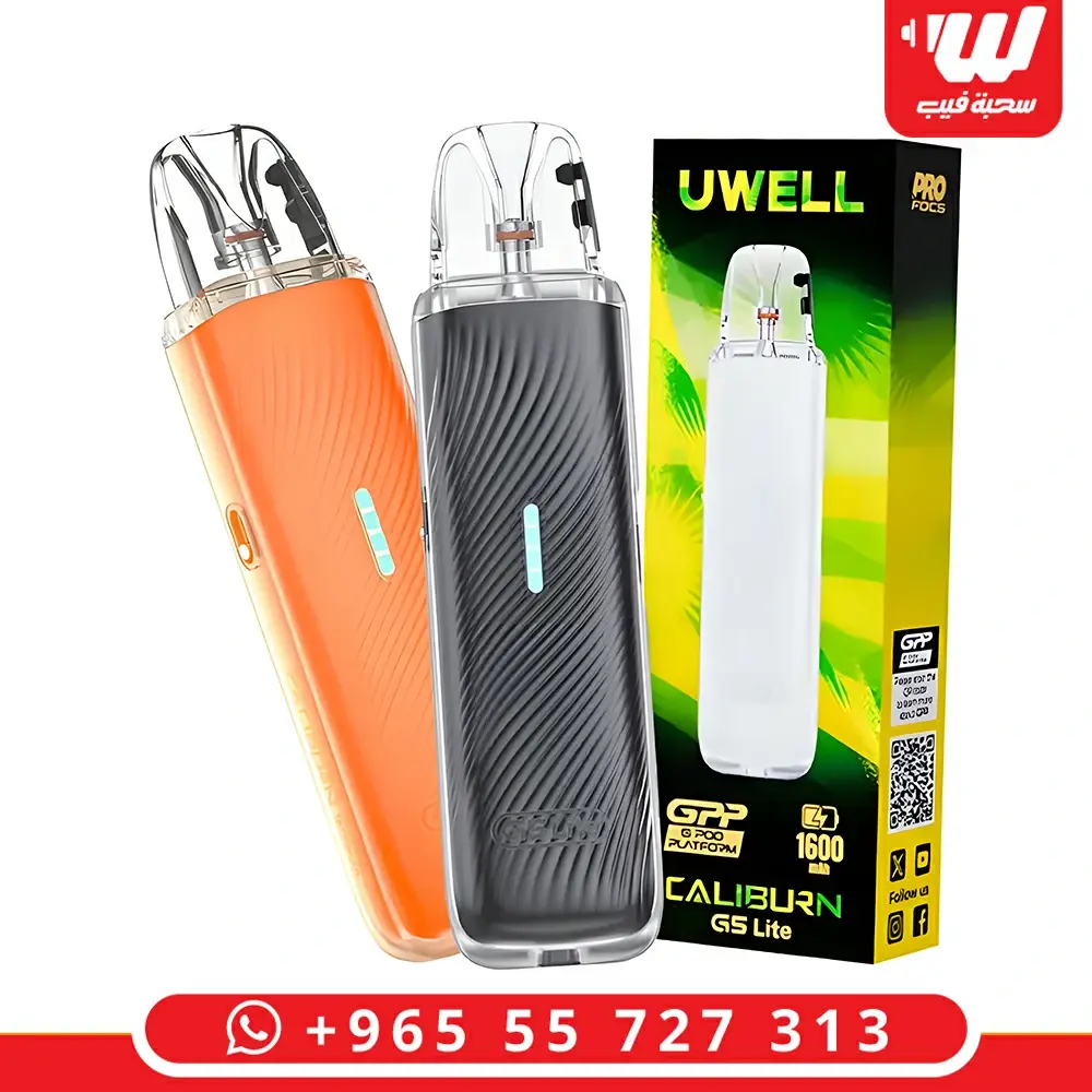 كاليبرن G5 Lite يأتيك ببطارية ضخمة 1600mAh تدوم لأيام، وقوة تصل لـ 35 واط. متوفر بتصميم شفاف عصري، خيارك الأول لطعم نكهة واضح وأداء يعتمد عليه.